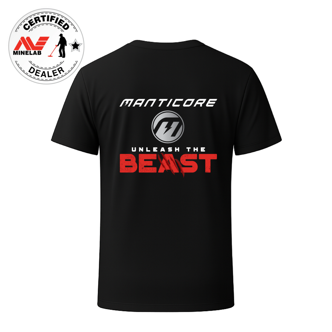 Featuring the Minelab logo on the front chest, bold Manticore-Unleash the Beast on the back, this T‑shirt is more than just clothing – it’s a statement piece for every Manticore enthusiast. A must‑have for detectorists, this limited edition T‑shirt will definitely be the talk of the field!